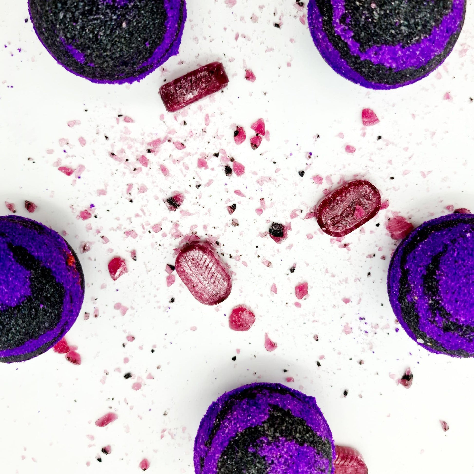 A Limited Edition scent for Halloween with a dark, mysterious design, of blacks and deep purples to give off those Halloween vibes. Watch as the bath bomb bleeds whilst it fizzes away with red colour release inside.