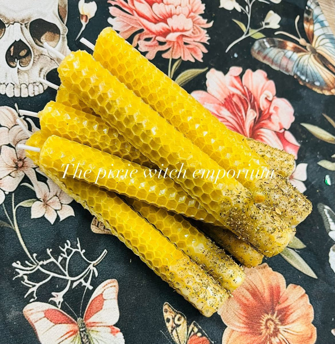then finished by being dipped into beeswax and dressed once more in the herb mix