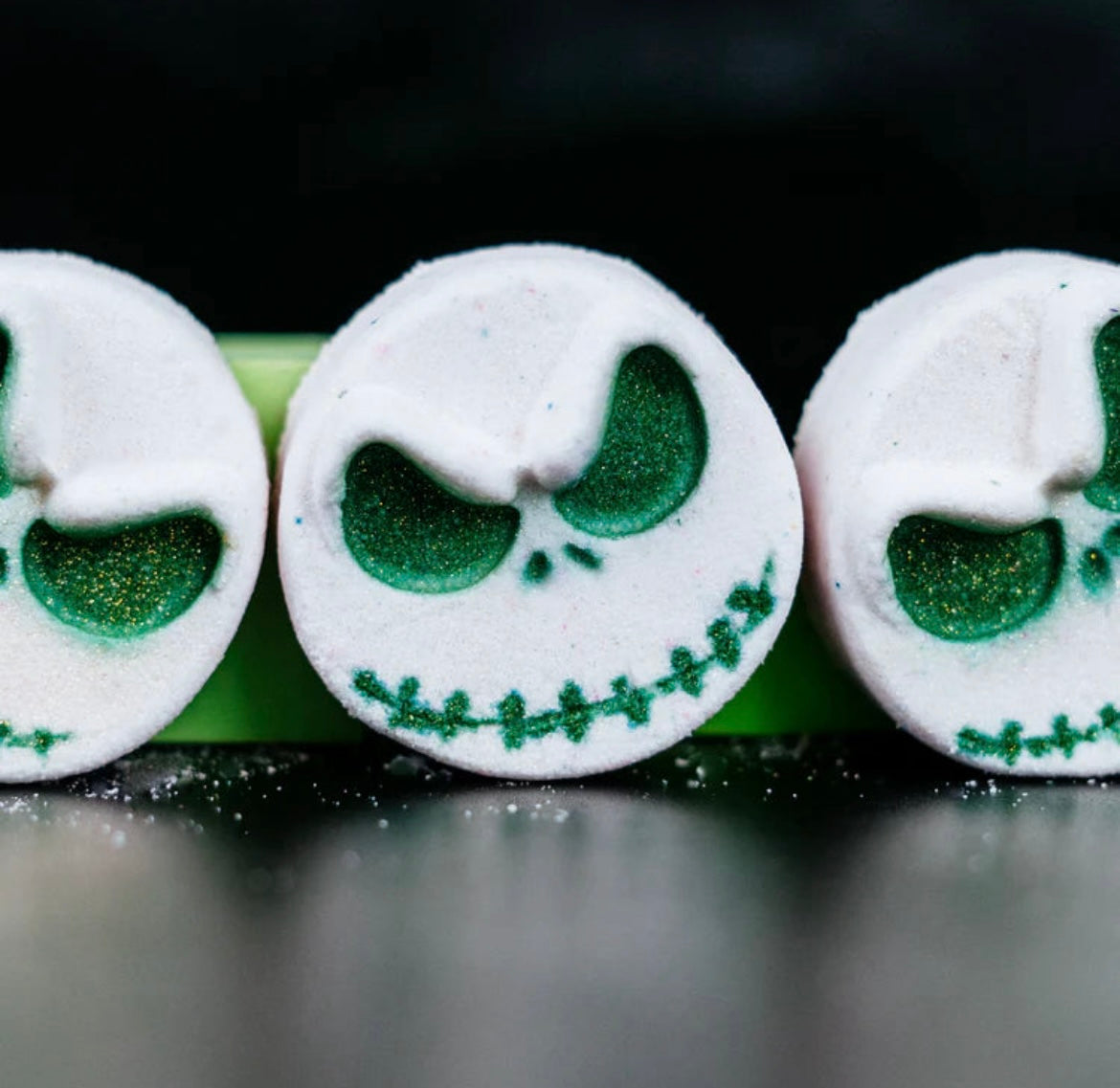 The first bath bomb is designed as JackSkell, which is scented in mixed berries and has black hidden colours.