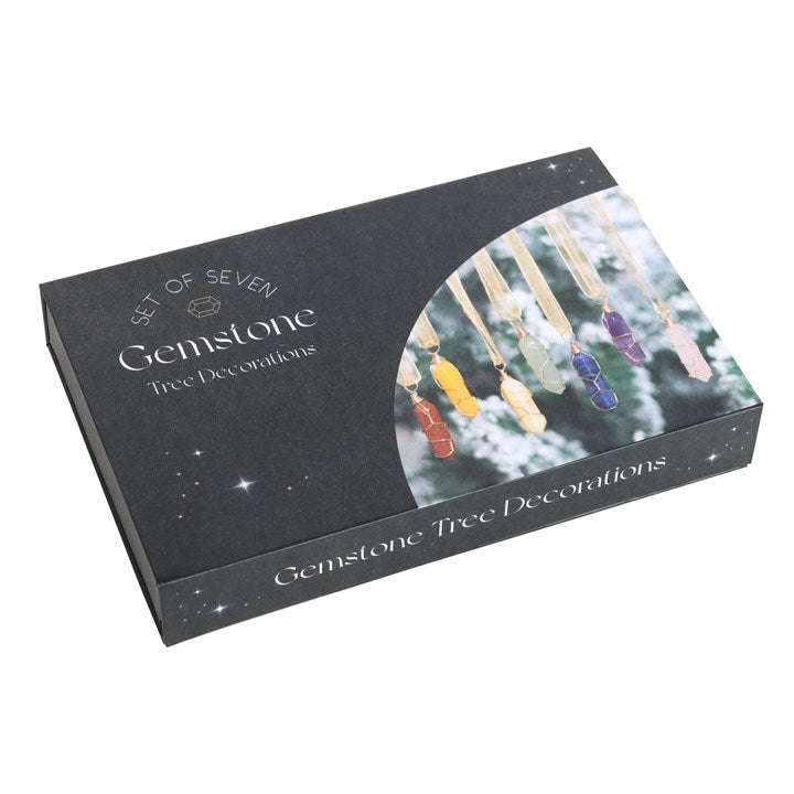 Adorn your Christmas tree with this set of 7 hanging crystals, each chosen for its unique spiritual properties. Featuring goldstone for beauty, orange carnelian for motivation, yellow jade for positivity, green aventurine for good luck, sodalite for harmony, amethyst for tranquility, and rose quartz for togetherness, these crystals will amplify festive spirits throughout the Christmas season. Perfect for creating a harmonious and joyous atmosphere, these sparkling ornaments not only beautify your tree but also enhance the energy of your home. As each crystal is unique, stone shape and colour may vary from photos shown.