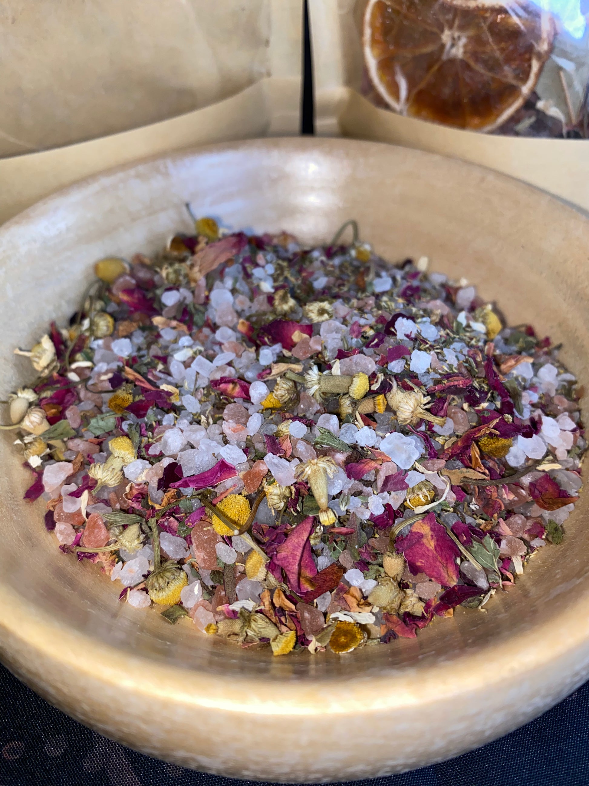 All natural ingredients, salts, herbs, flowers, fruits and spices.