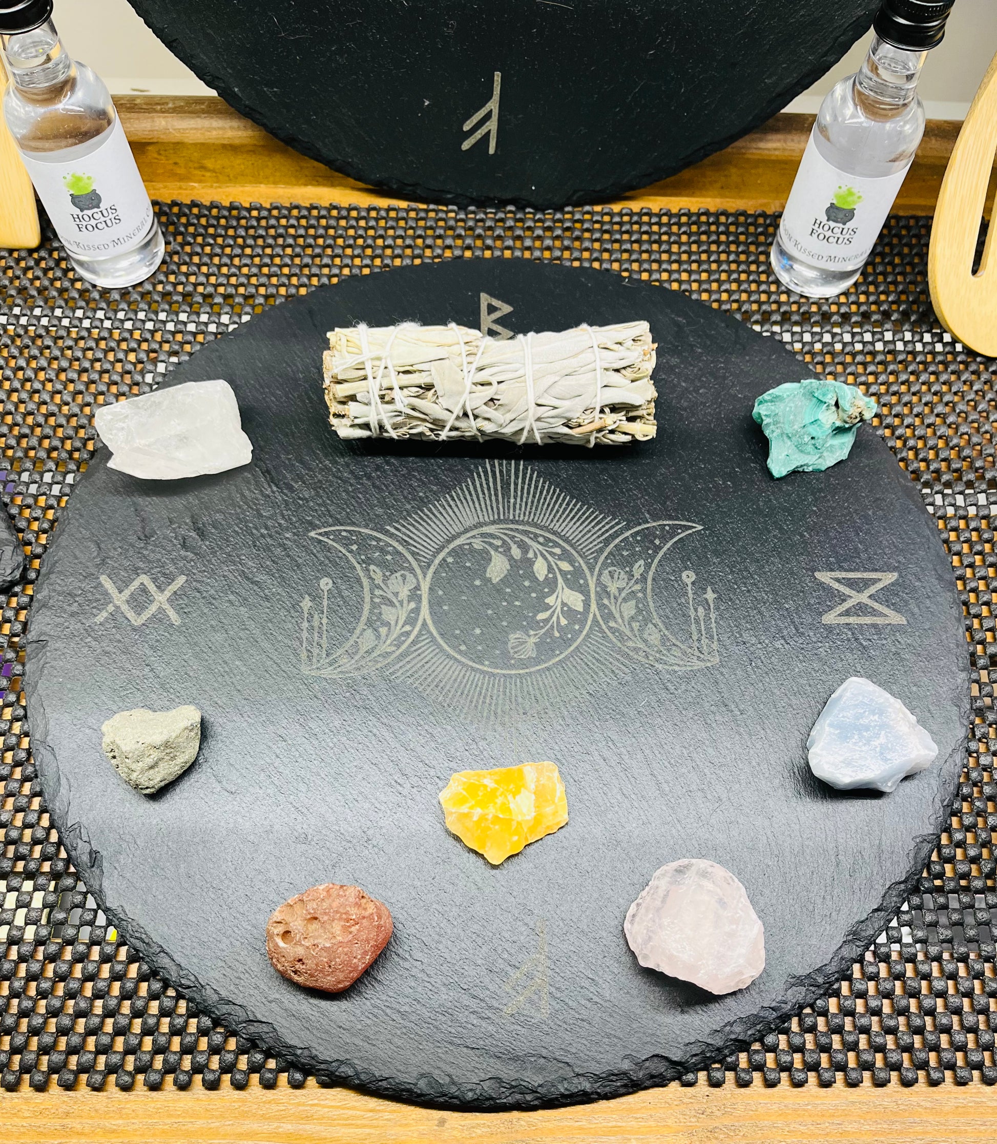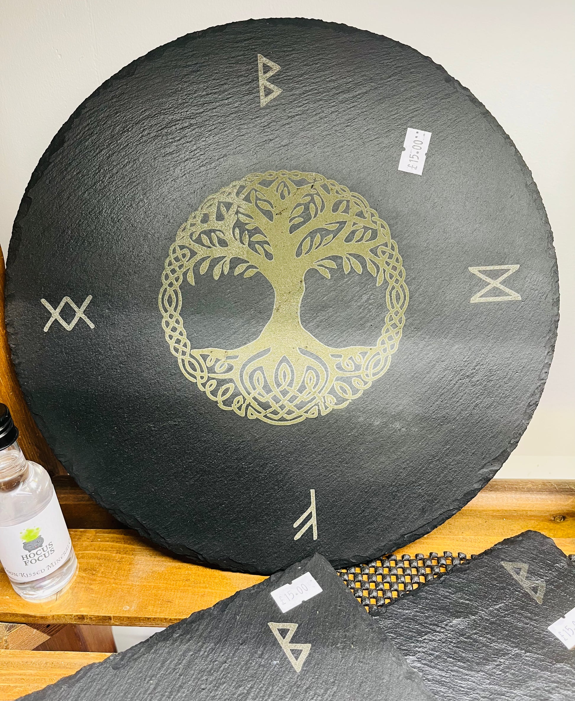Hocus Focus present to you these natural slate chargers with various engraved designs