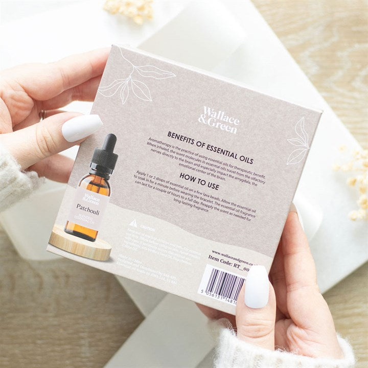 This stress less lava bead bracelet and essential oil gift set uses aromatherapy to enhance the metaphysical healing power of crystals. Crafted with natural howlite and lava beads, the bracelet serves as a diffuser for the included patchouli oil, promoting calmness and clarity with its earthy, grounding elements. The addition of the double spiral charm symbolises balance, making it an ideal gift for anyone seeking tranquillity on the go. Crafted with durable materials and packaged in a luxury gift box, this elasticated bracelet combines beauty and functionality, offering a thoughtful present for various occasions.