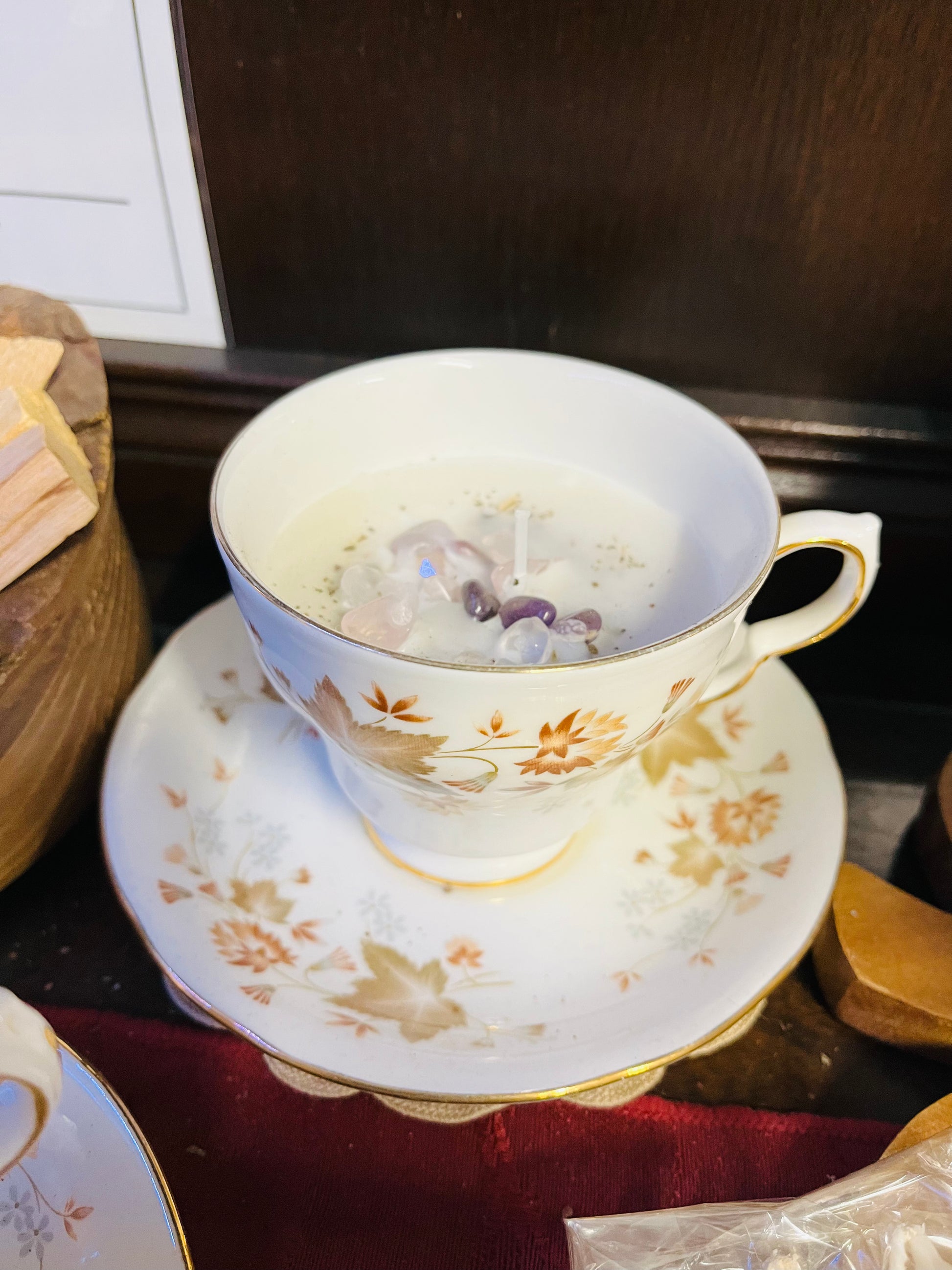 Tea cup crystal candles - peppermint